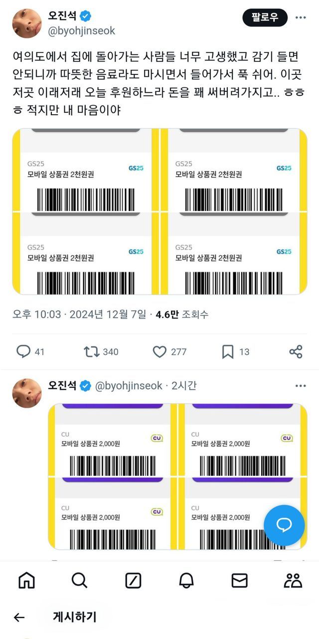 집회 가는 사람들 먹으라고 기프티콘 뿌린 배우