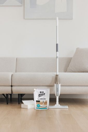 쏟은 물이나 음료수 청소는 클리너를 뿌리지 않은 ‘건식’ 상태로 밀면 그대로 흡수할 수 있다. 고객이 원하는 대로 수분량을 조절할 수 있어 정전기 청소 포와 물걸레 청소 포를 따로 쓸 필요가 없다.