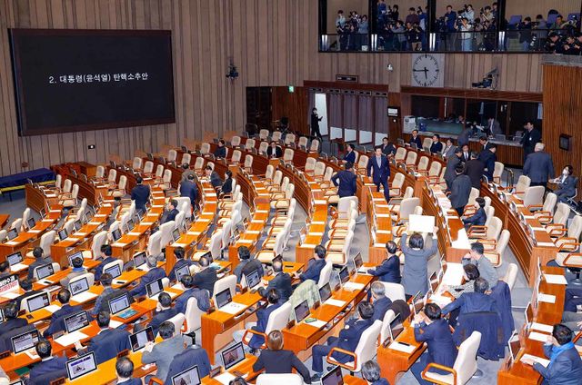 노종면 더불어민주당 원내대변인은 8일 "윤석열 대통령의 탄핵소추안 표결이 오는 14일 현실화할 가능성이 매우 크다"고 밝혔다. 그는 전날 탄핵안 표결에 불참한 국민의힘에 대해서는 "순간순간이 지옥이 될 것"이라고 강하게 비판했다.