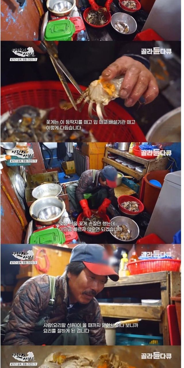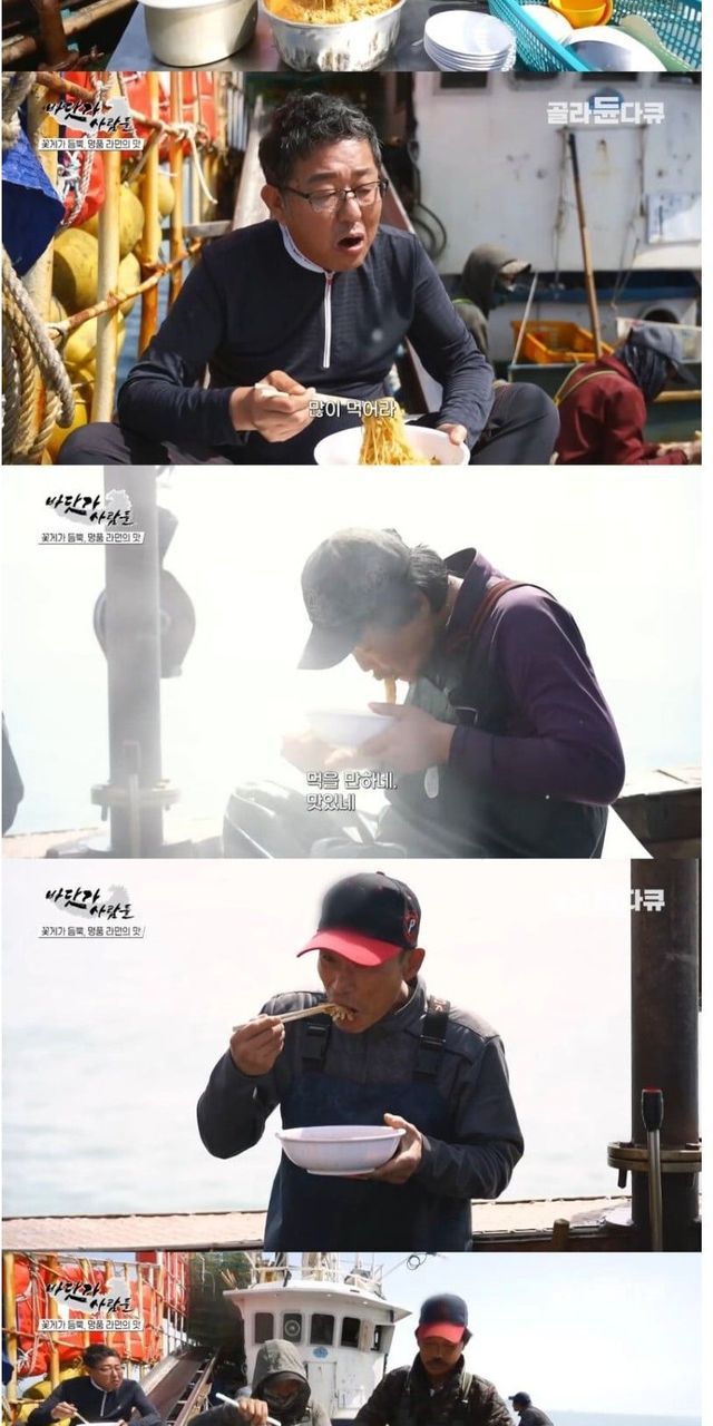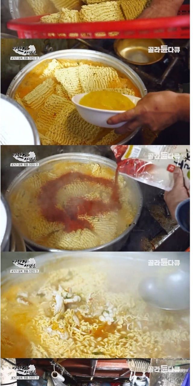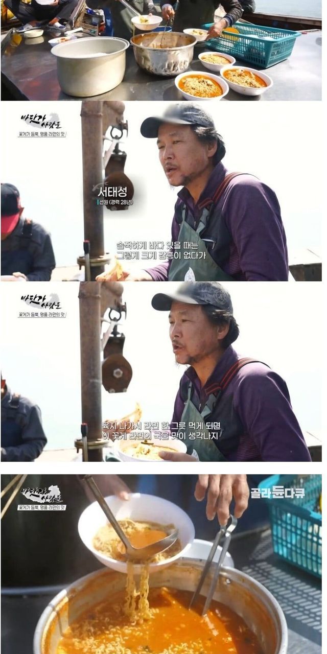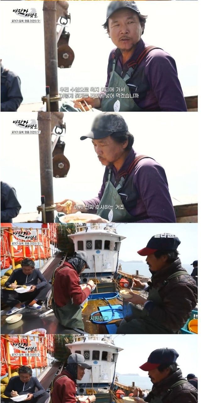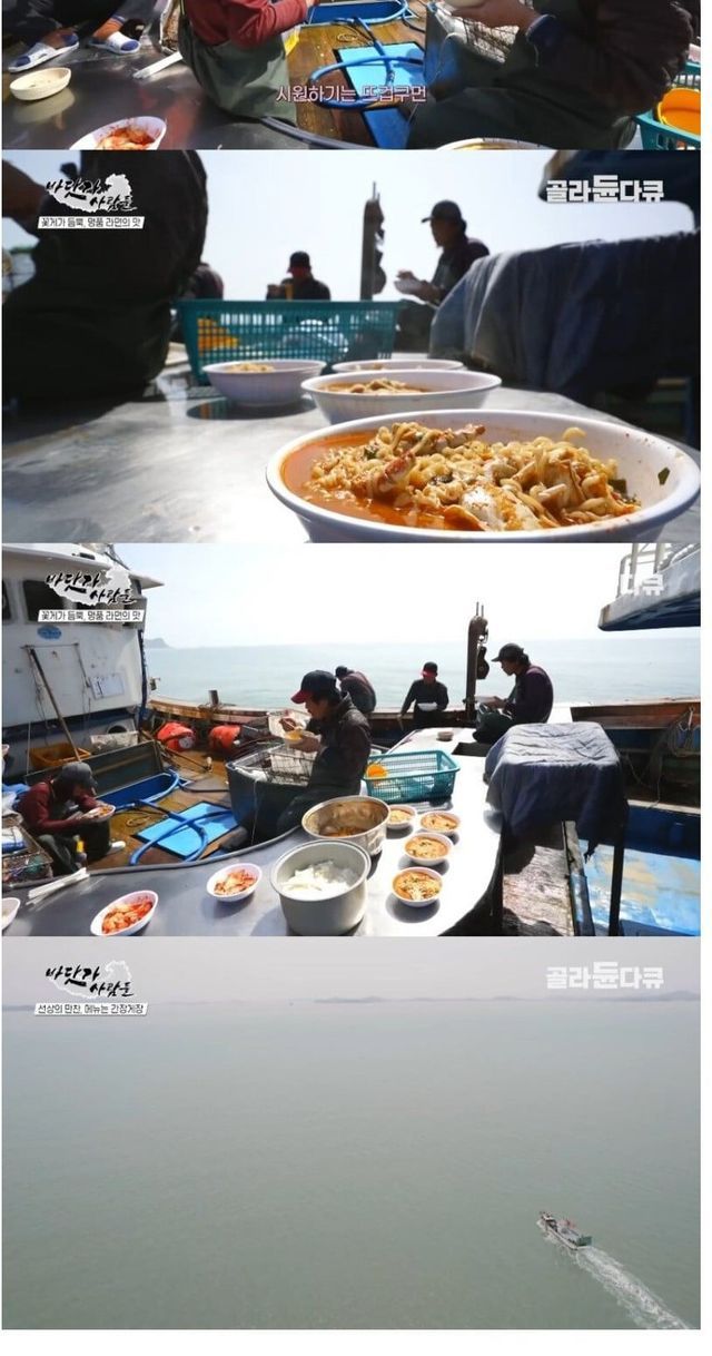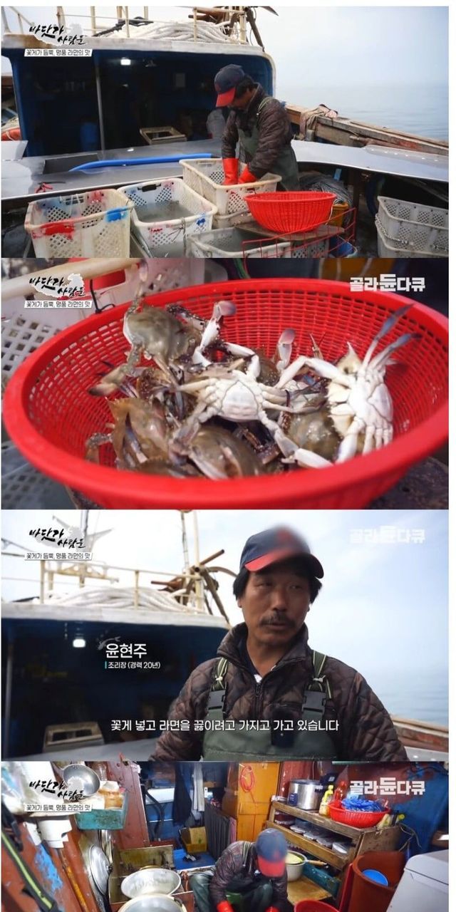 꽃게잡이 배에서 끓여 먹는 꽃게라면