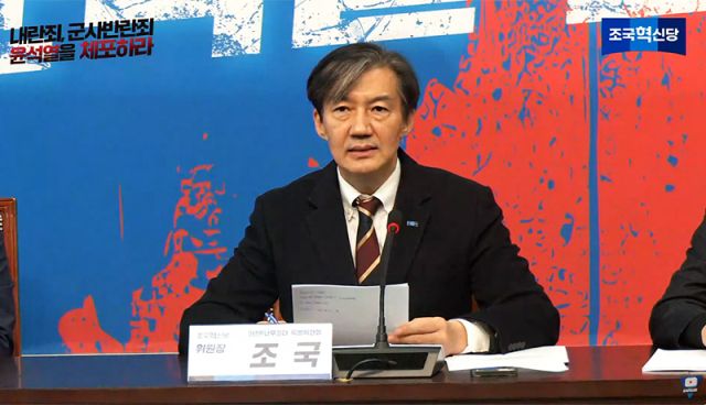 조국혁신당 조국 대표는 이날 기자회견에서 검찰이 윤 대통령의 내란죄를 수사하는 것 자체가 문제라고 주장했다.