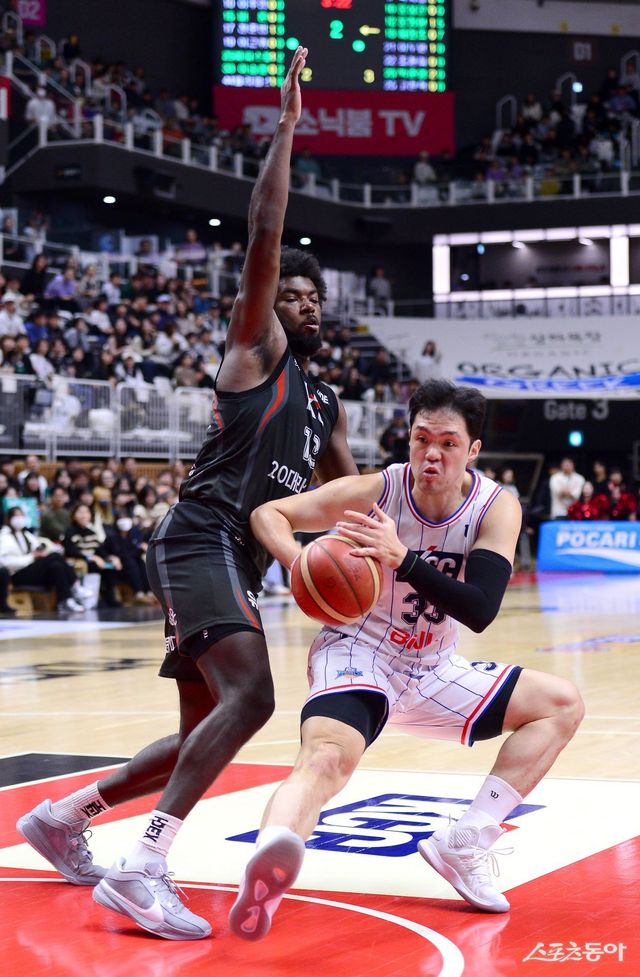 클러치 3점포로 쐐기 박은 윤원상…선두 LG, 2차 연장 끝에 KCC 잡고 4연승