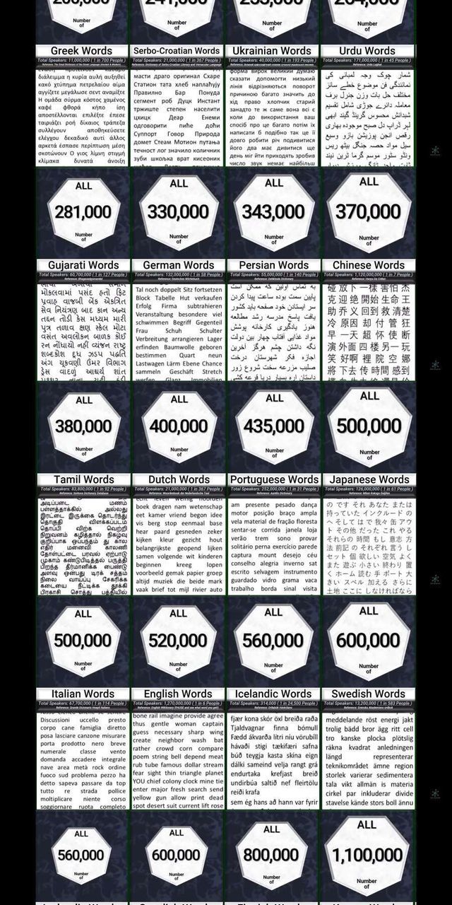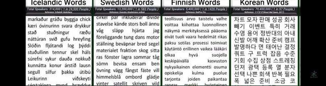 단어갯수.... 그래서 한국어를 번역하는 번역가들이 힘들어한다고 함