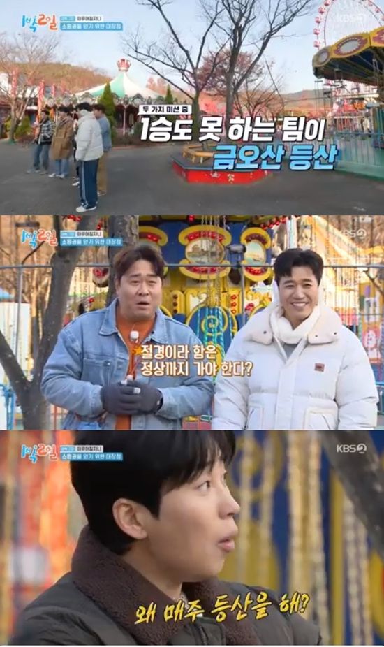 8일 방송된 KBS 2TV '1박 2일 시즌4'에서는 딘딘이 등산 벌칙을 알고 폭발하는 모습이 전파를 탔다.
