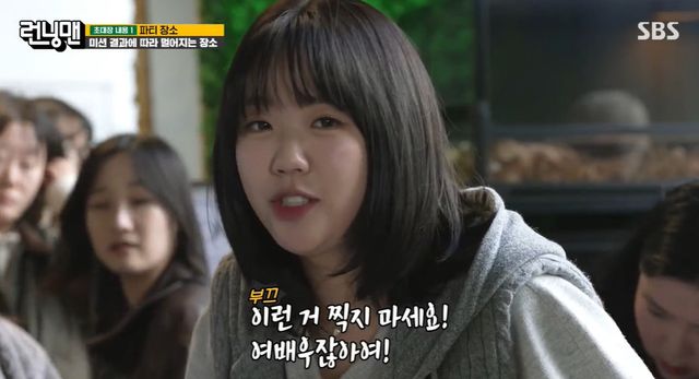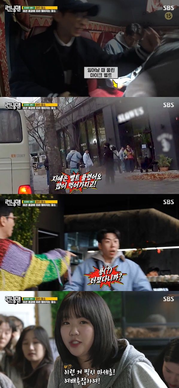 (엑스포츠뉴스 이유림 기자) '런닝맨' 지예은이 마이크 벨트가 풀리며 멤버들에 놀림을 당했다.