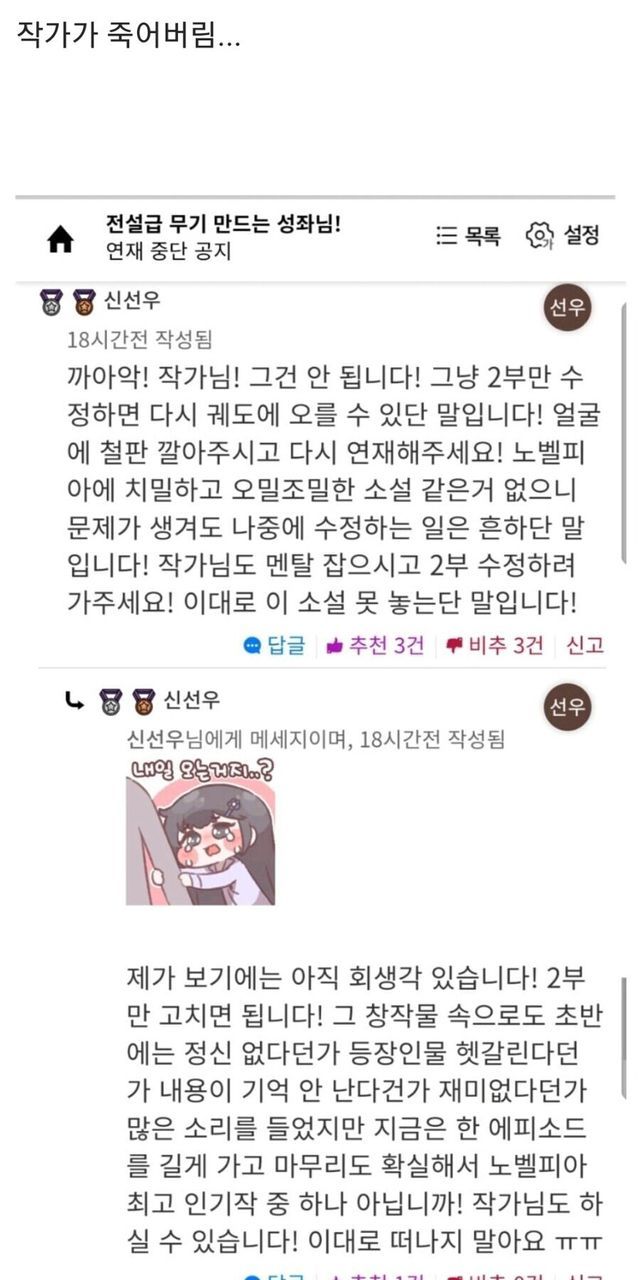 웹소 작가를 도우려던 어긋난 팬심의 최후.jpg