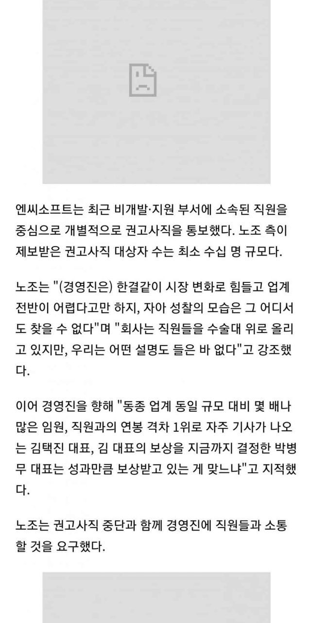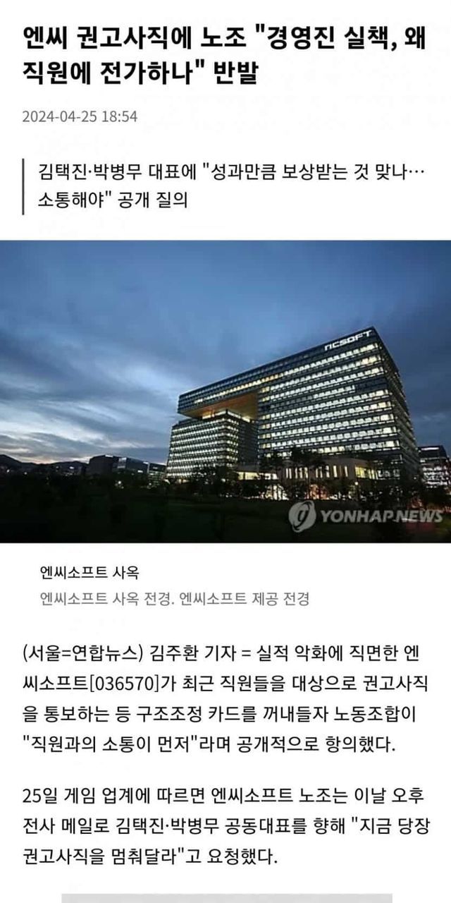 엔씨 김택진: ‘경영 실적이 너무 안좋아 무능한 직원들 솎아내 해고할것’