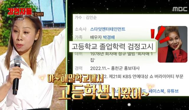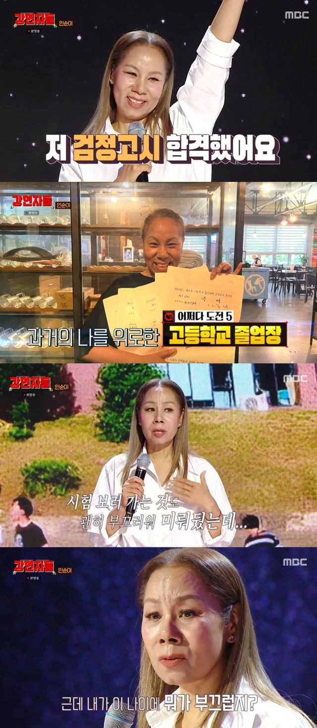 이날 인순이는 "축하해주세요"라고 하더니 고등학교 검정고시 합격 소식을 전했다. 다문화가정 아이들을 위한 해밀학교를 운영하면서 자신의 '중학교 졸업' 프로필이 신경 쓰였다고.