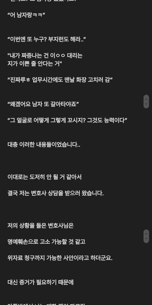회사에서 나 씹고 다니던 애들 전부 고소함
