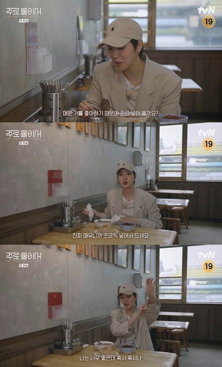 '오징어갱 돼지고기 덮밥 볶음면'을 한입 맛본 김고은은 식초와 간장을 넣으며 입맛에 맞게 기호를 조절했다.