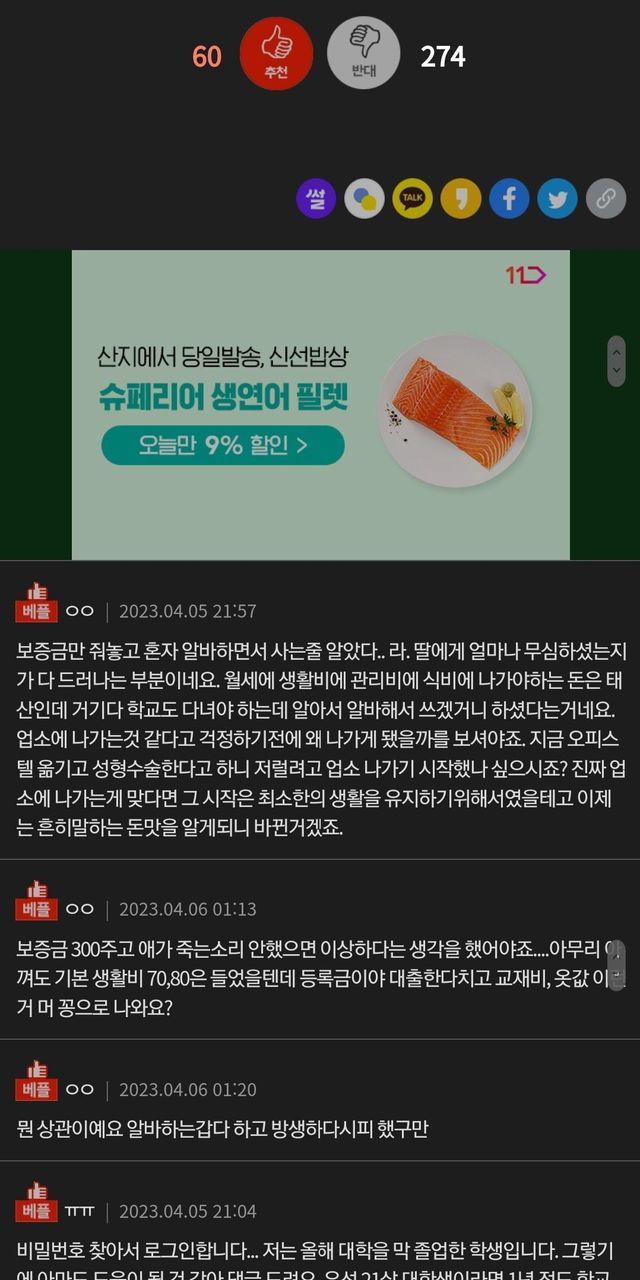 한국의 현실을 베플이 보여주고