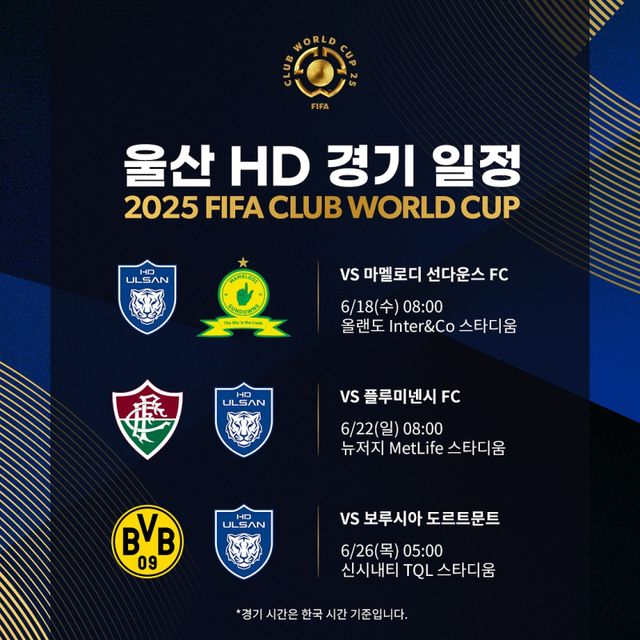 울산은 지난 6일(한국시간) 미국 플로리다주 마이애미에서 진행된 대회 조 추첨식에서 보루시아 도르트문트(독일), 플루미넨시(브라질), 마멜로디 선다운스(남아프리카공화국)와 F조에 속했다. 내년 6월 미국에서 열리는 대회 조별리그에서 2위 안에 들어야 16강 토너먼트에 진출할 수 있다. 16강에선 인터 밀란(이탈리아), 리버 플레이트(아르헨티나) 등이 속한 E조 팀들과 격돌한다.