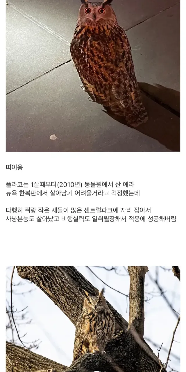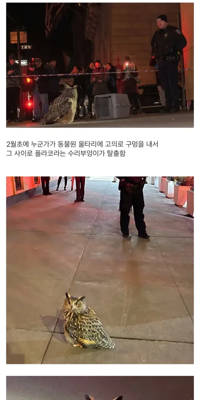 동물원 탈출하고 행복하게 사는 수리부엉이.