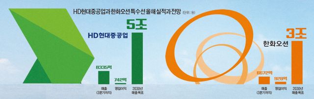 한화오션도 3분기까지 매출 6672억원, 영업이익 928억원을 기록했다. 한화오션의 2030년 특수선 매출 목표는 3조원 이상이다.