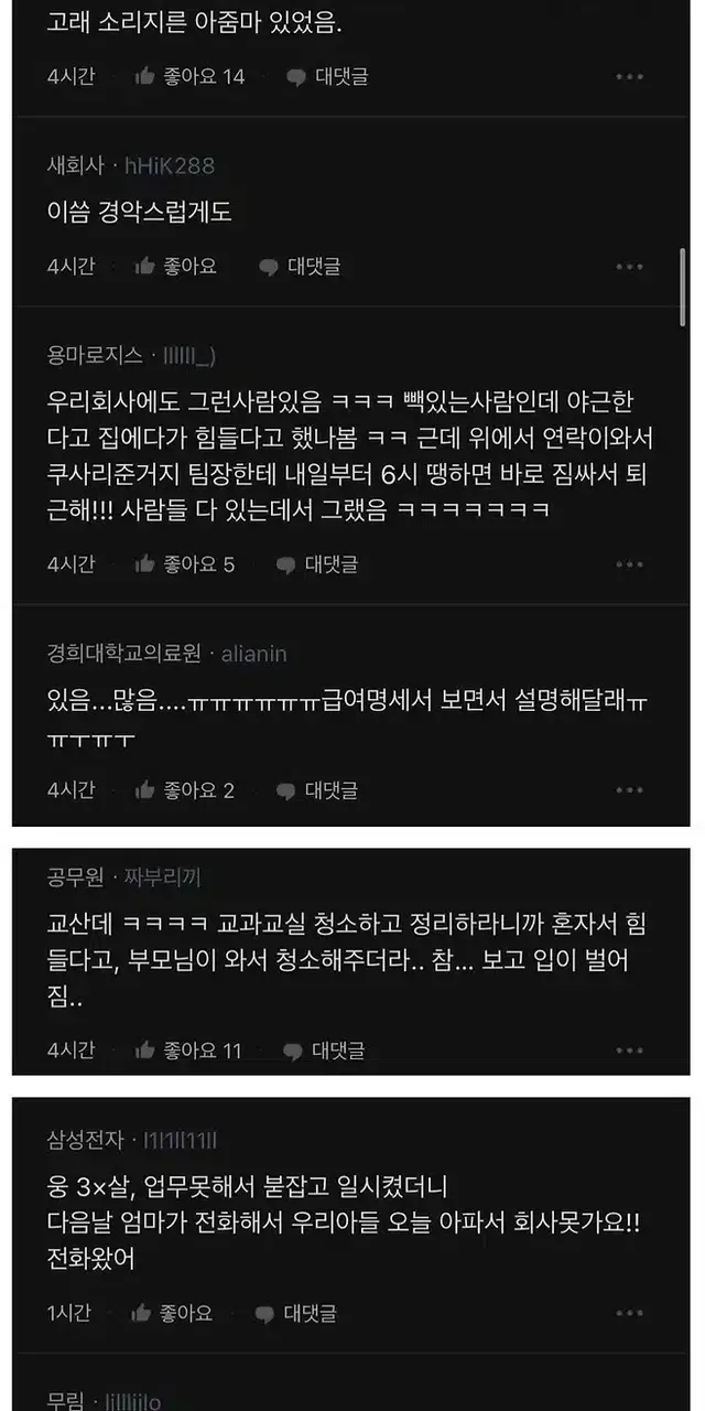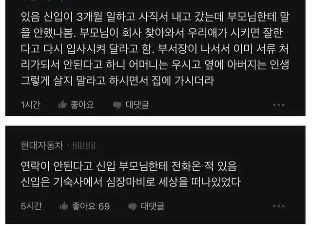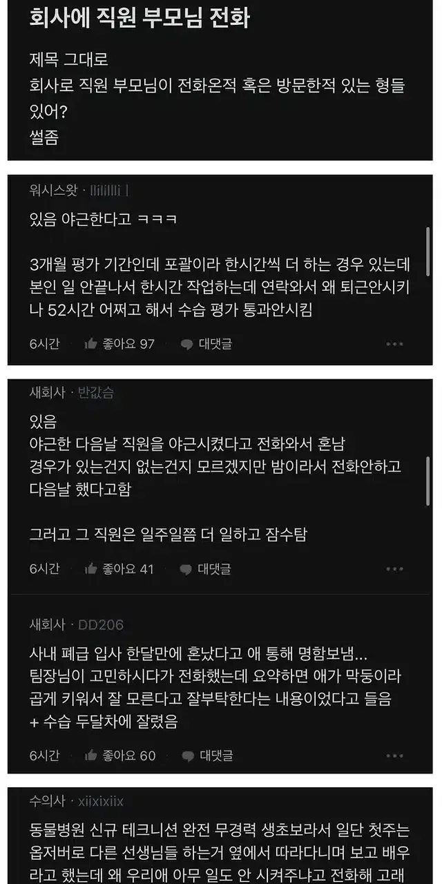 회사에서 직원의 부모님으로부터 전화 받은 경험들,,