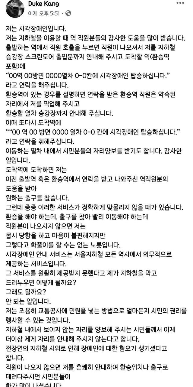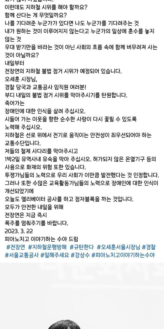 저는 시각장애인입니다. 전장연의 폭주를 멈춰주세요..