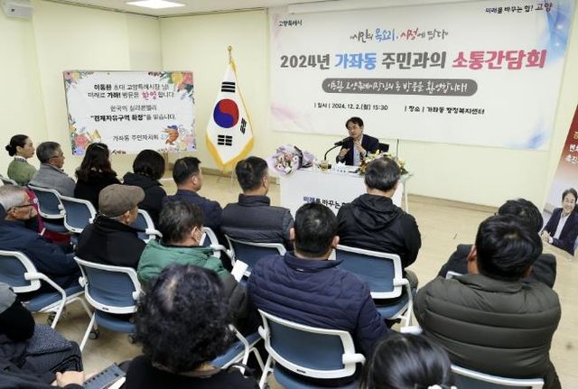 [파이낸셜경제=김영란 기자] 고양특례시가 지난 2일부터 6일까지 가좌동, 삼송1동, 일산2동, 고양동, 마두2동 등 5개 동 주민들을 대상으로 소통간담회를 실시했다고 밝혔다.