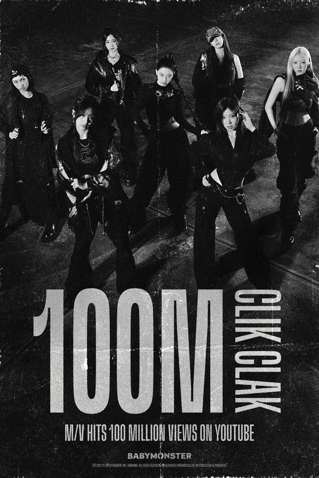 9일 YG엔터테인먼트에 따르면 베이비몬스터의 정규 1집 더블 타이틀곡 'CLIK CLAK' 뮤직비디오는 이날 오전 3시 30분 유튜브 조회수 1억 회를 넘어섰다. 지난 10월 30일 공개된 지 약 41일 만으로, 이들의 통산 8번째 억대뷰 영상이다.