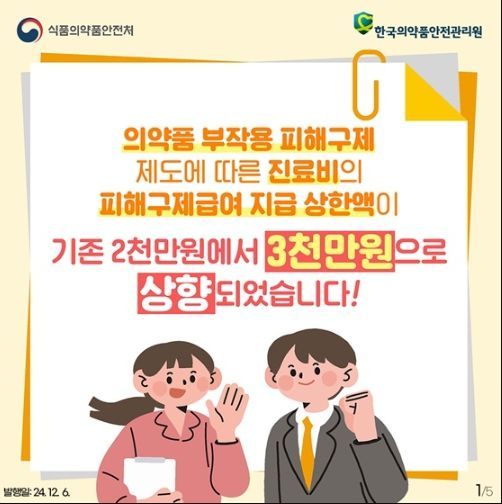 [와이뉴스] 기존에는 의약품 부작용으로 입원치료를 한 경우 그 치료에 드는 비용 중 2천만 원 이하의 범위에서 진료비를 보상해 왔으나,