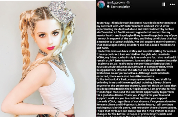 그녀는 “이번 탈퇴 결정이 K팝 시스템 속 아이돌과 연습생을 보호할 수 있는 발판이 되기를 바란다”고 말했다.