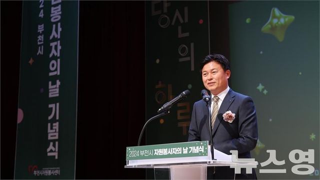 (부천=뉴스영 김동윤 기자) 조용익 부천시장은 지난 5일 '2024 자원봉사자의 날 기념식'에 참석해 “한 해 동안 부천시와 어려운 이웃들을 위해 봉사활동에 참여해 주신 2만여 명의 자원봉사자 한 분 한 분의 손길과 정성에 감사와 존경의 마음을 전한다”며, “자원봉사자의 노고가 존중받는 부천시가 될 수 있도록 많은 관심을 기울이겠다”고 기념사를 말했다.