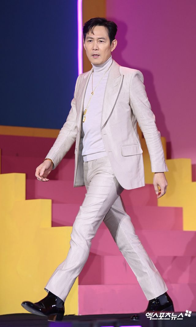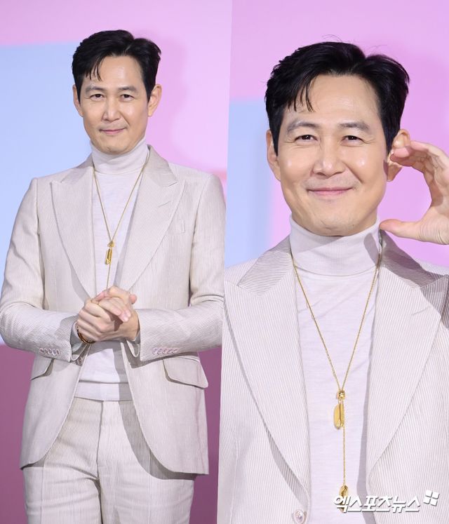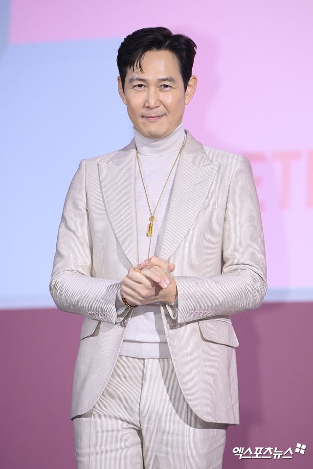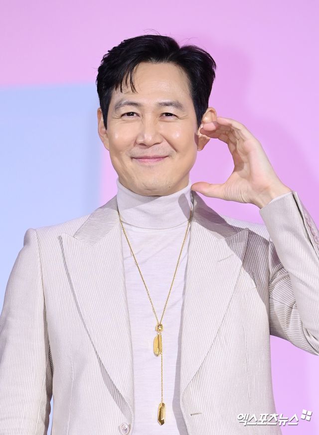 이날 제작발표회에 참석한 배우 이정재가 포토타임을 갖고 있다.