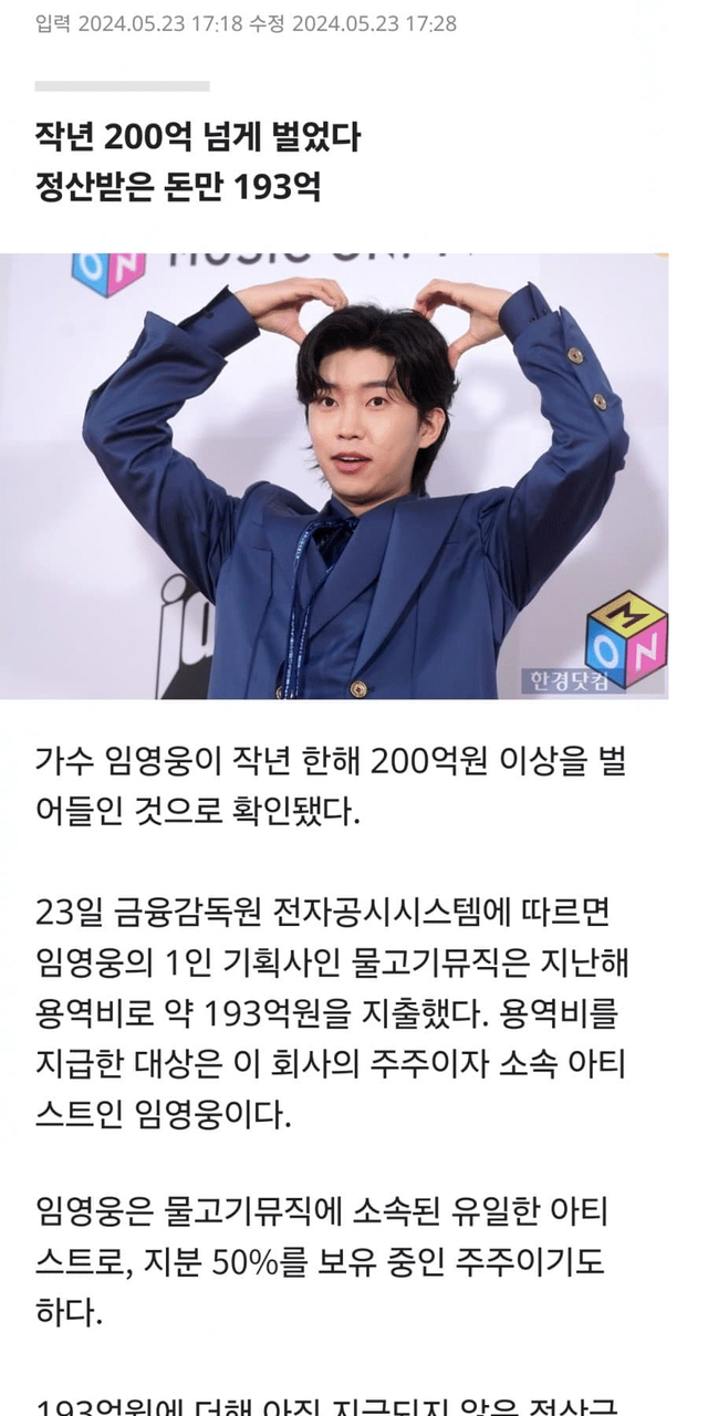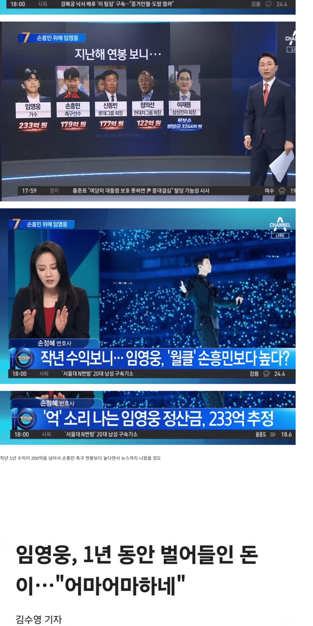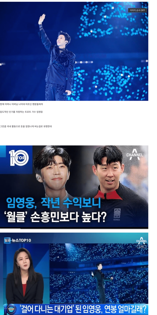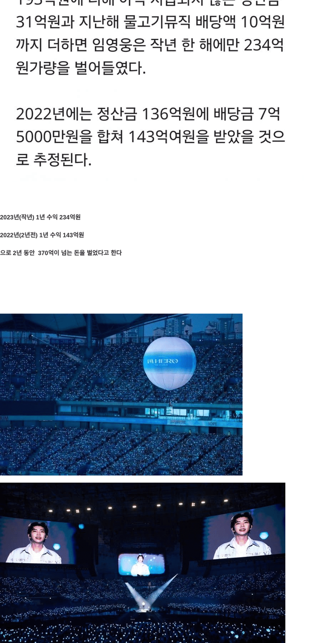 현재 한국 트로트 원탑인 임영웅 작년 수익,,