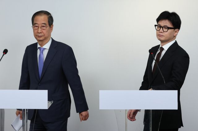 8일 오전 텔레비전을 통해 한덕수 국무총리와 한동훈 국민의힘 대표가 나란히 서서 국정 공동운영 방침을 밝히는 모습을 지켜봤다. 참으로 기괴하고 해괴망측한 장면이었다. 등장 인물의 면면, 담화 발표 장소, 발언 내용 등 모든 게 한편의 블랙 코미디였다.