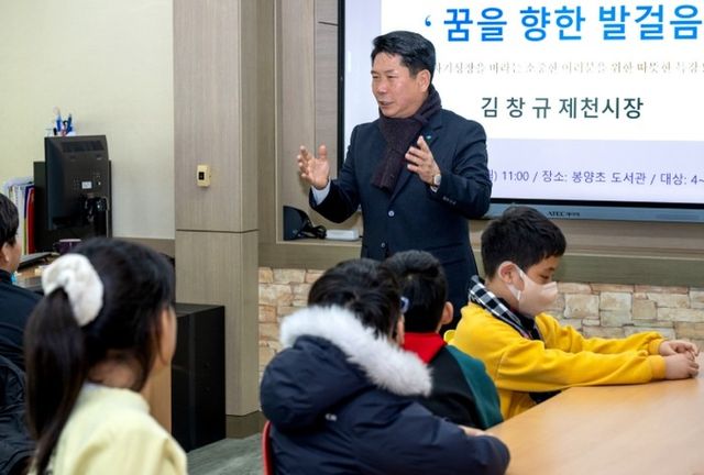 이번 특강은 모교 출신 김창규 제천시장이 방문하여 '꿈을 향한 발걸음'이라는 주제로 학생들과 소통하는 시간을 가졌으며, 봉양초에 다니던 시절의 꿈을 이야기하며 자신의 꿈을 스스로 응원하고 가꾸는 것의 중요성을 강조했다.