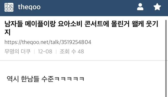 이 시국에 이대남들은 팔자 좋게 콘서트 보러 간다고 불타는 중