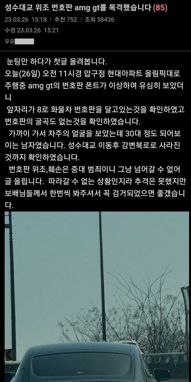 보배] 멍청한 번호판 위조범.