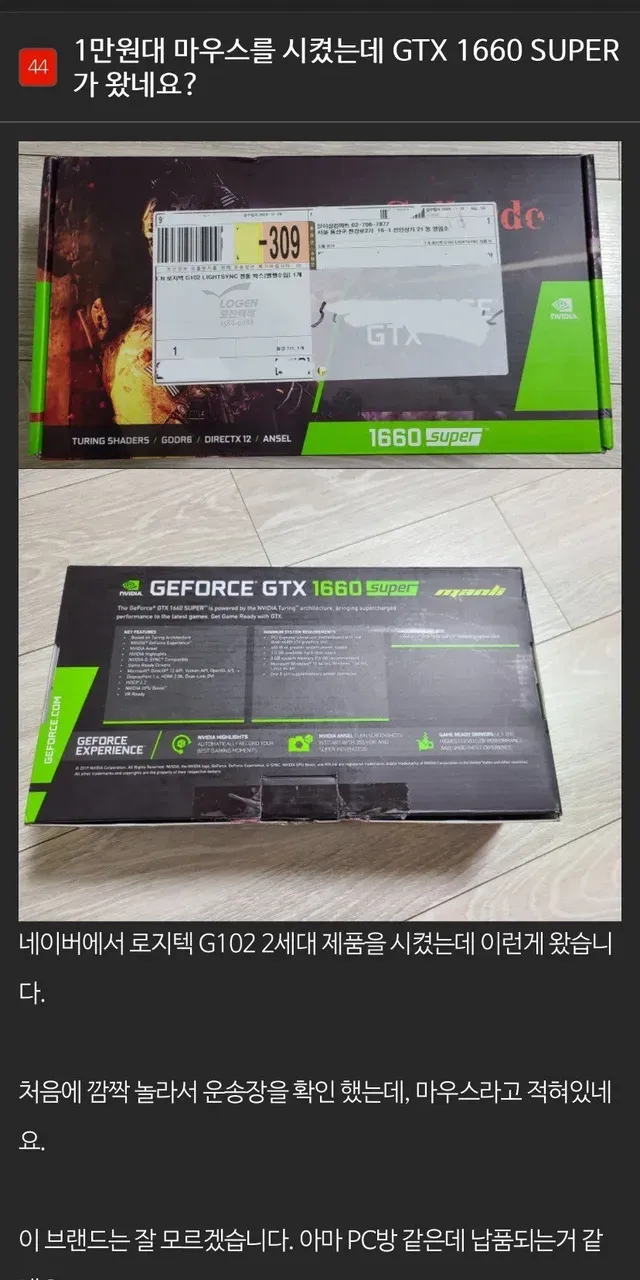 만원짜리 마우스를 시켰는데 그래픽카드가 왔어요