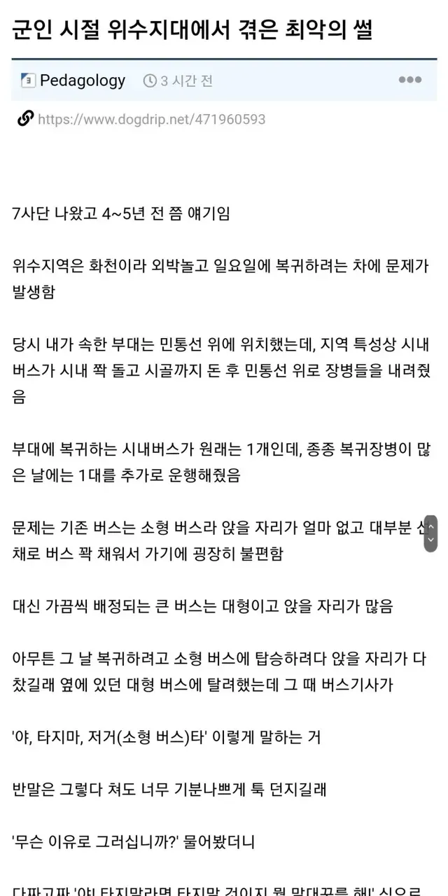 역대급 군인 시절 위수지대에서 겪은 최악의 썰.