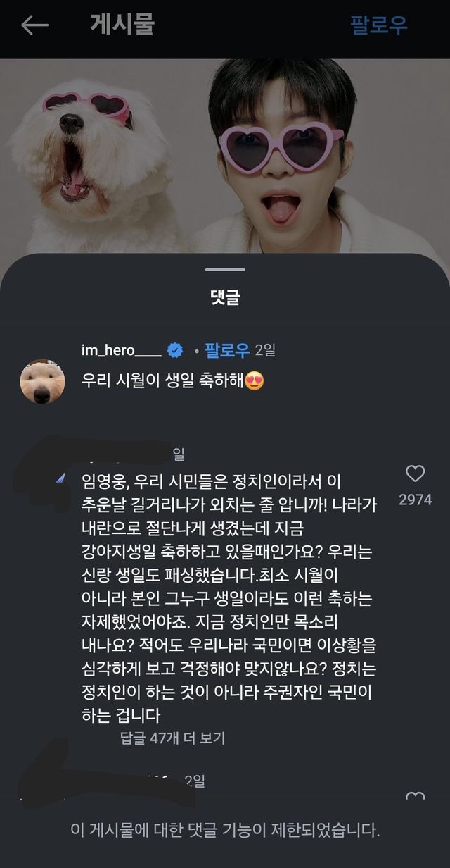 댓글반응 안좋으니 막아놓고 버티기 시전