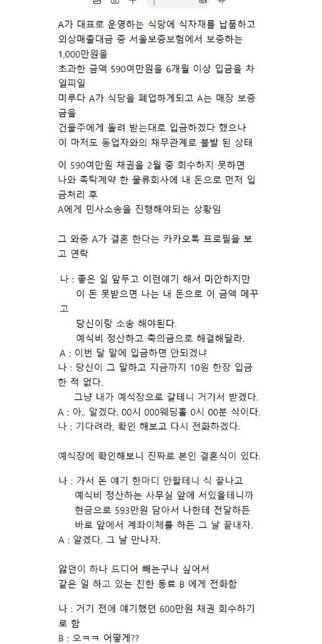 떼인 돈 받으러 결혼식장으로….