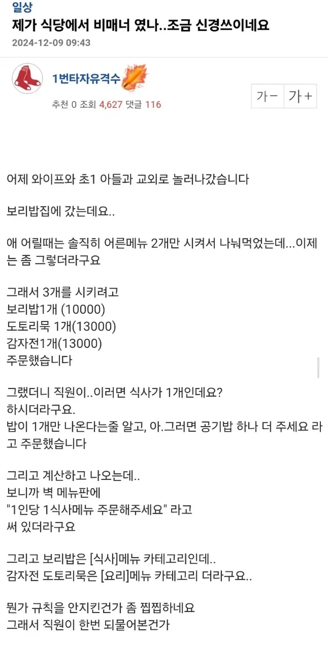 1인 1메뉴 시켜야하는 식당에