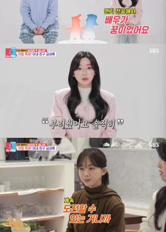 그리고 김나현은 배우가 꿈이었다고 말하면서 "오디션과 아르바이트를 병행했다. 그래서 연기에 몰두를 못했다. 솔직히 새록이가 데뷔를 했을 때 부러웠다. 그런데 오빠를 만났고, 아이가 생겼다. 지금은 가족이 더 중요해서 꿈을 미뤄뒀다"고 했다.