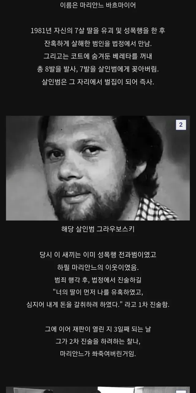자기 딸 죽인 살인범 직접 죽여버리는 엄마.