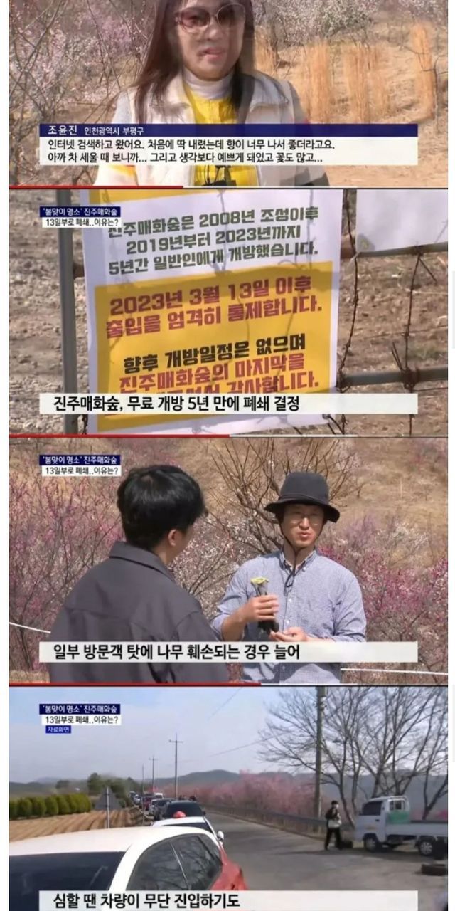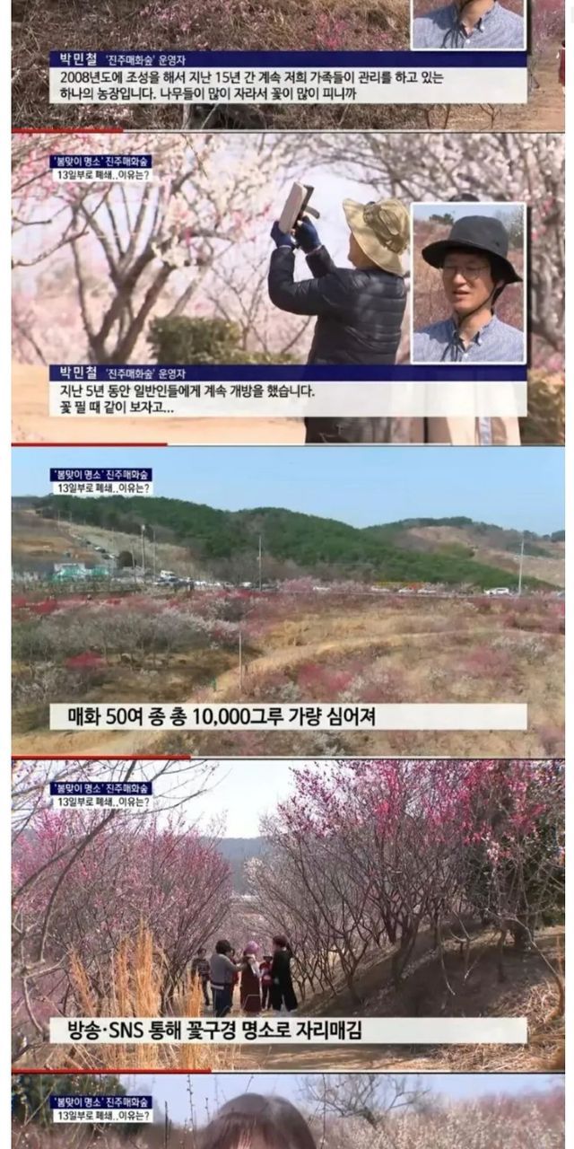 무료개방 5년만에 폐쇄를 결정한 매화숲.