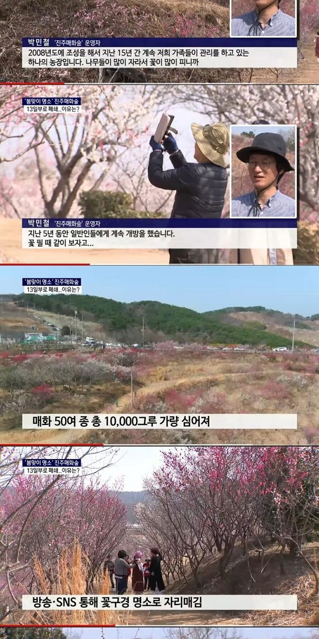 무료로 개방했던 진주매화숲 문 닫는 이유.