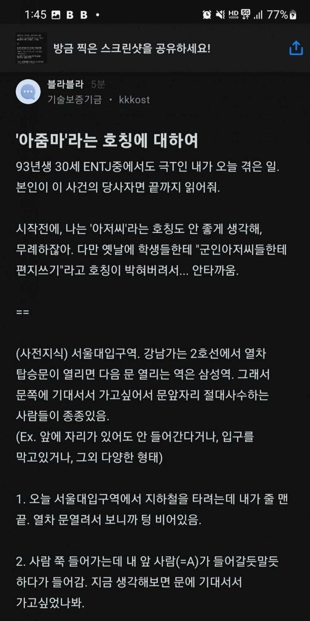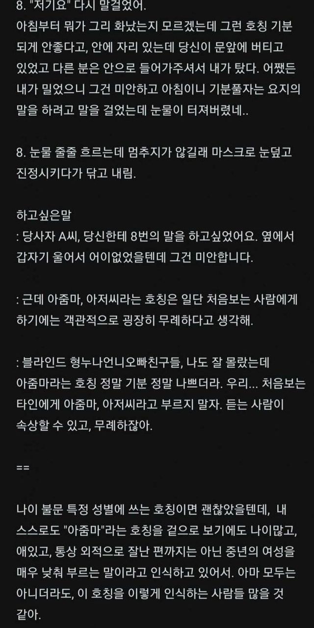 아줌마 라는 호칭을 써서 화가 난 여성.