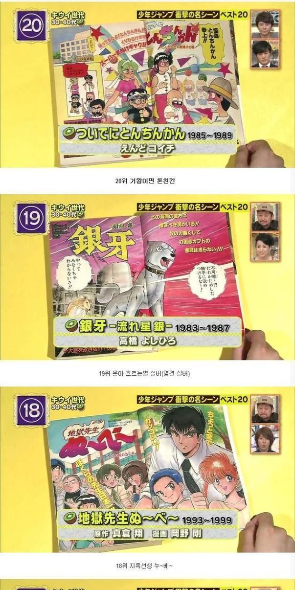 10년전, 일본인 30대, 40대가 뽑은 역대 만화 Top20.