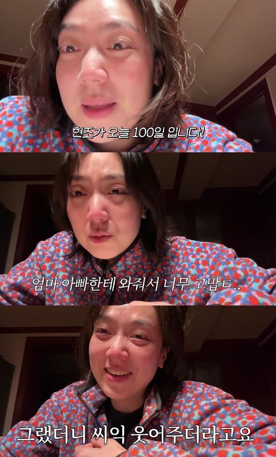 이은형은 "100일 동안 엄마가 모유도 잘 안 나오고 잘 돌봐주지 못했는데 건강하게 잘 웃어줘서 고맙다고 얘기했다. 그랬더니 씨익 웃더라. 엄마가 사랑하는 거 현조가 알아듣는 것 같더라. 호르몬 어떡해"라며 눈물을 쏟아냈다.