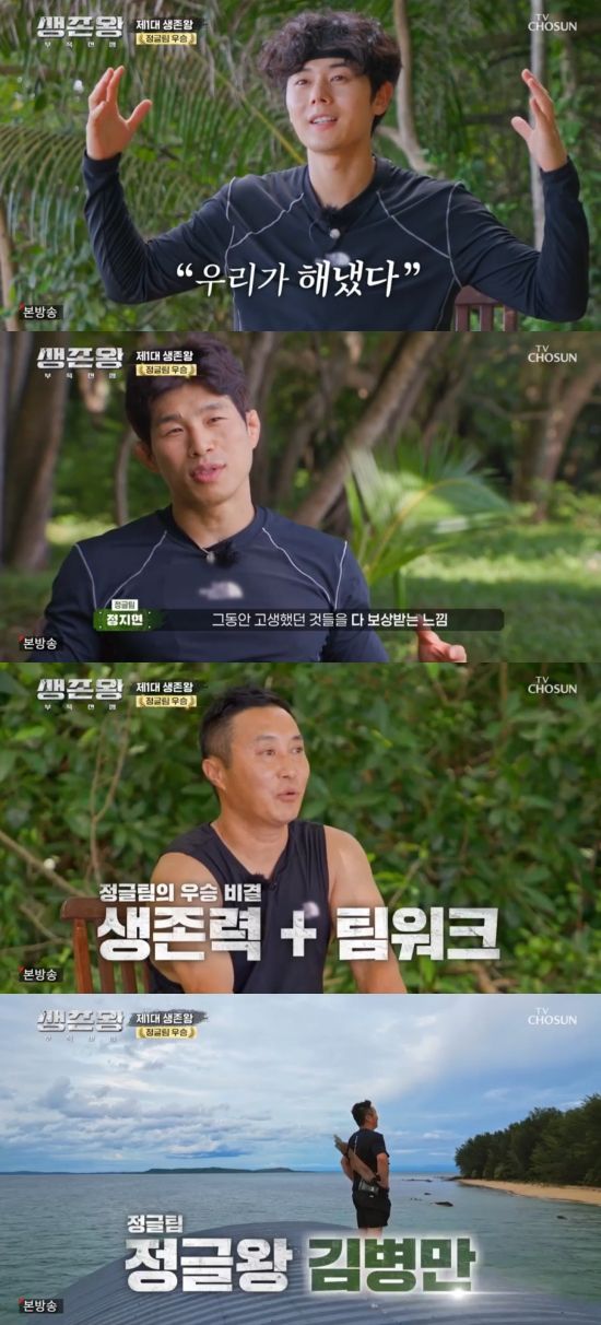 또 정글팀의 우승 소감이 공개됐다. 김동준은 "진짜 지금까지 열흘 동안 경쟁을 하면서 생존을 하면서 파노라마처럼 그 순간들이 지나가면서 한 장면의 사진으로 남아있다. 우리가 해냈다"라며 감격했다.
