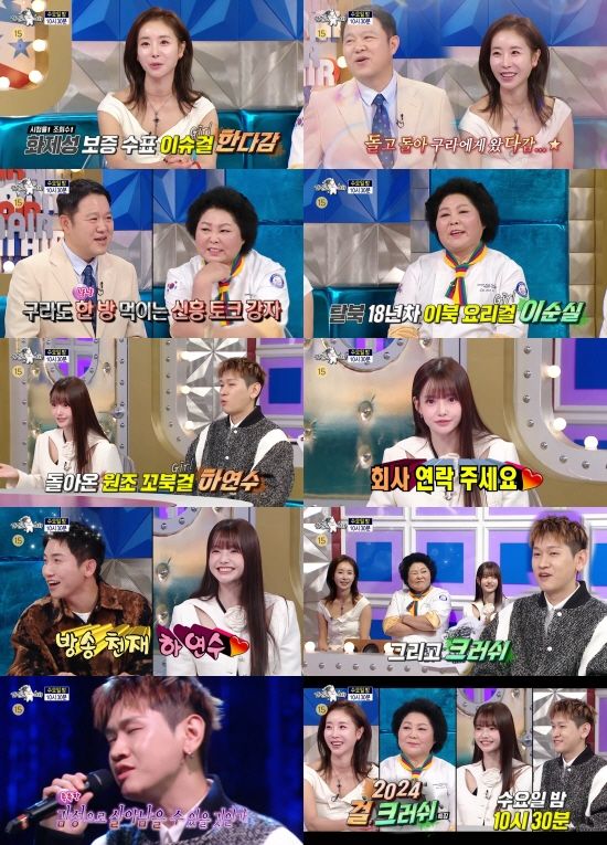 (엑스포츠뉴스 김현정 기자) ‘라디오스타’에 이슈’걸’ 한다감, 이북 요리’걸’ 이순실, 원조 꼬북’걸’ 하연수와 함께 크러쉬가 출연한다. 다시 돌아온 '2024 걸, 크러쉬' 특집으로 뭉친 이들이 출연한 예고편에는 MC 김구라가 긴장하고, 유세윤의 웃음이 포착됐다.