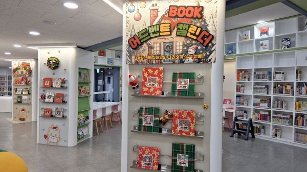 1층 어린이자료실 한켠에 마련된 ‘어드벤트 북 캘린더’는 어린이들에게 특히 인기가 좋다. 크리스마스 선물처럼 포장된 책을 전시해 두고 매일 한 권씩 개봉함으로써 책에 대한 궁금증과 흥미를 키우고 어린이들이 책과 가까워질 수 있도록 했다.