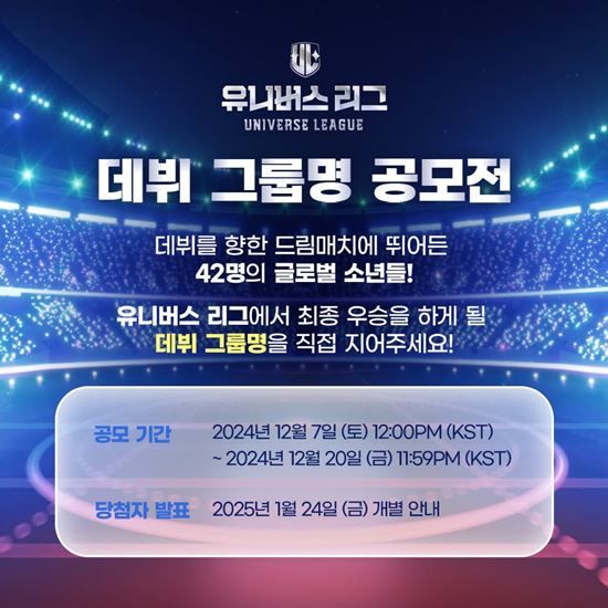 (엑스포츠뉴스 김예은 기자) '유니버스 리그' 최종 데뷔 그룹명 공모가 시작됐다.