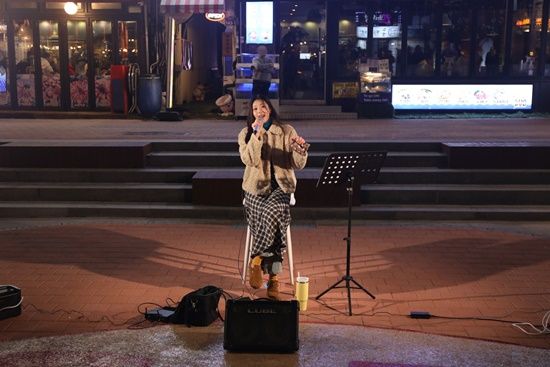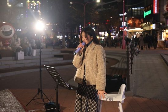 케이시는 지난 9일 오후 서울 버스킹존에서 단독 버스킹을 진행했다.