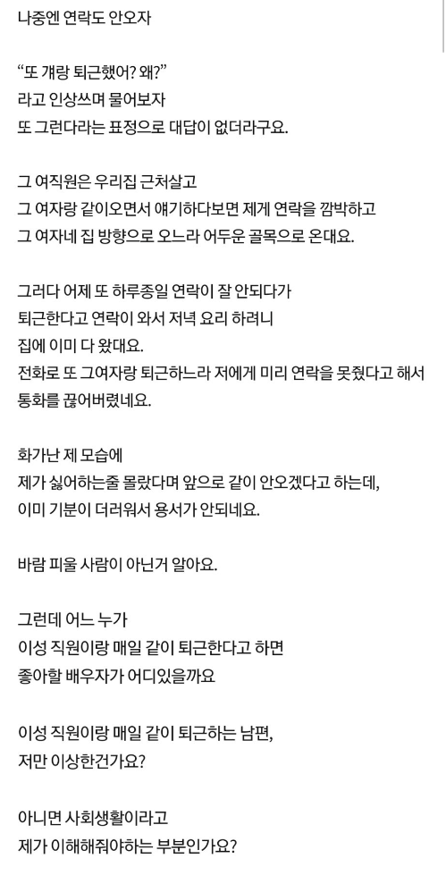 와이프가 여직원 얼굴 보고 아무말도 안함