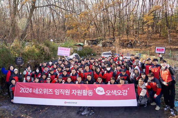 네오위즈홀딩스는 특별한 연말을 위해 진행한 임직원 참여 자원 활동 프로그램 ‘2024 오색오감’을 성공적으로 종료했다고 10일 밝혔다. ‘오색오감’은 네오위즈 마법나무재단이 주최하는 연말 사회공헌활동이다. 이번 오색오감은 지난 10월 첫 번째로 진행한 생태계 교란 식물 제거를 시작으로, 약 두 달간 목공 맞춤 가구 제작, 점자촉각 시계놀이 만들기, 커피 찌꺼기 업사이클링, 연탄 나눔 활동을 순차 진행했다. 나성균 네오위즈 마법나무재단 이사장은 “임직원들과 함께 진행한 연말 자원 활동으로 지역사회에 따뜻한 온기가 전해지길 바란다”며 “앞으로도 이웃과 마음을 나누는 다양한 활동들을 고민하고 실천해 나가겠다”고 말했다.